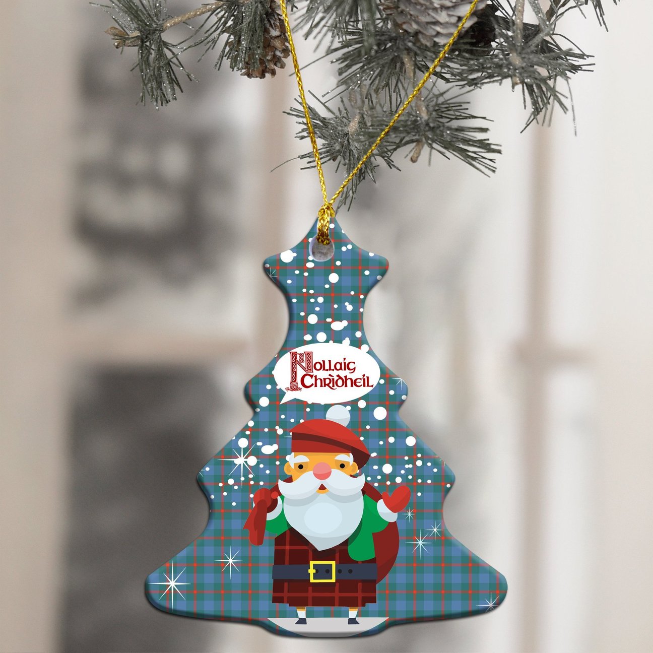 Agnew Ancient Tartan Christmas Ceramic Ornament - Santa Style