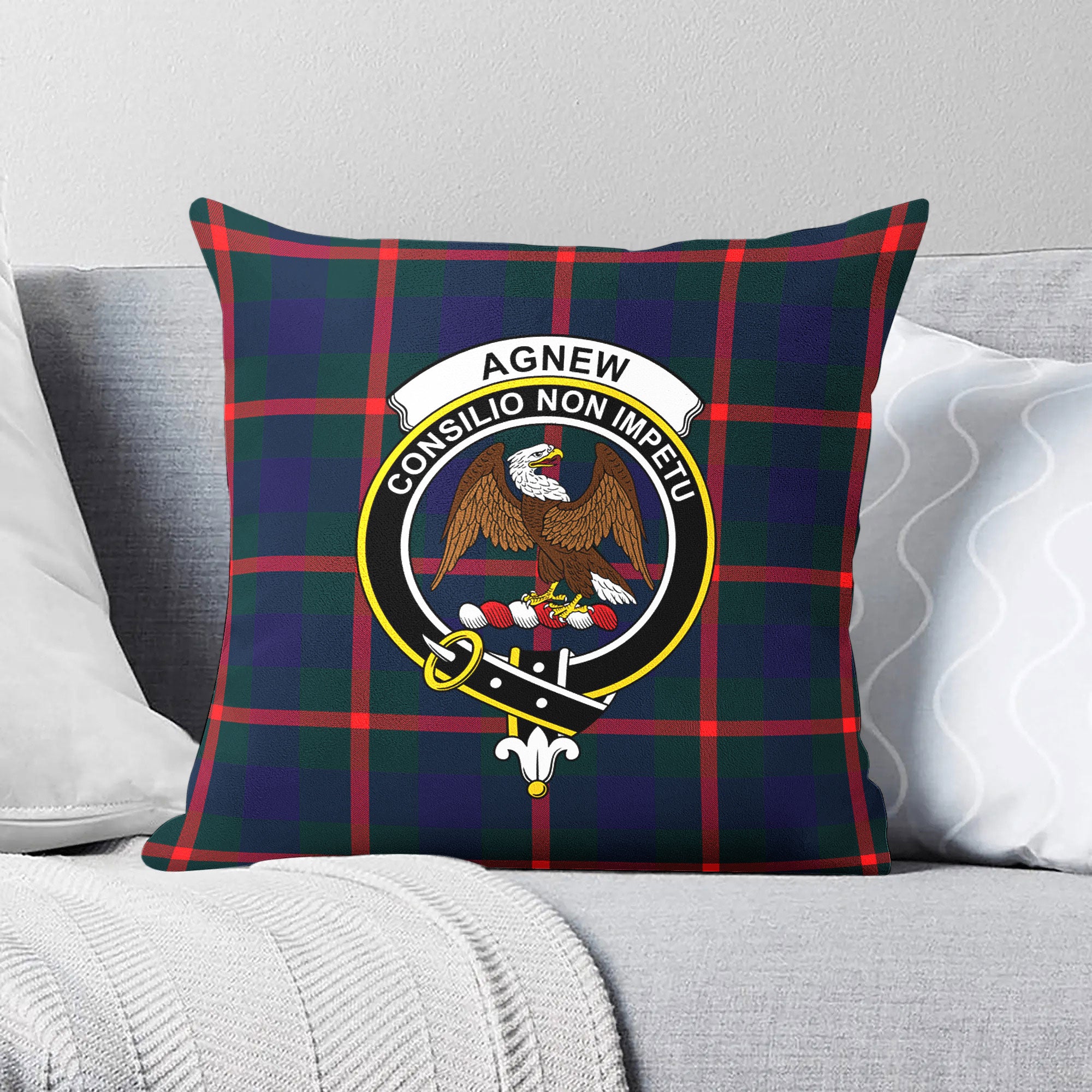 Agnew Modern Tartan Crest Pillow Cover