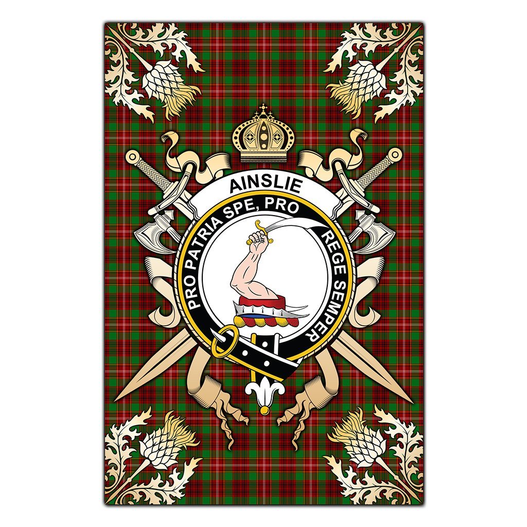 Ainslie Tartan Crest Black Garden Flag - Gold Thistle Style