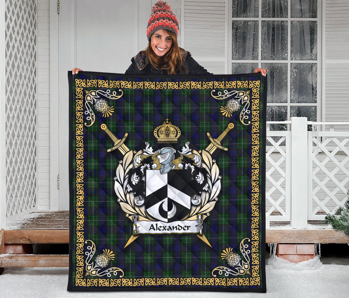 Alexander Tartan Crest Premium Quilt - Celtic Thistle Style
