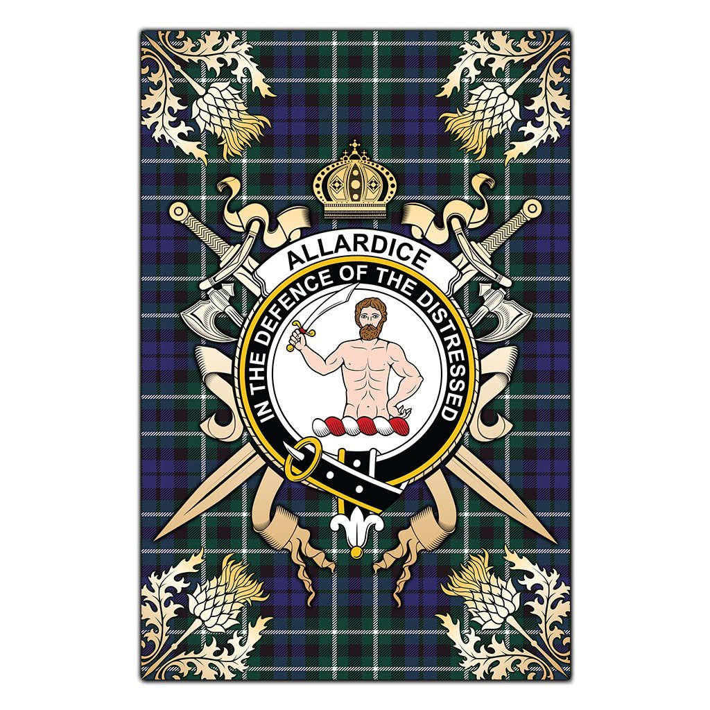 Allardice Tartan Crest Black Garden Flag - Gold Thistle Style