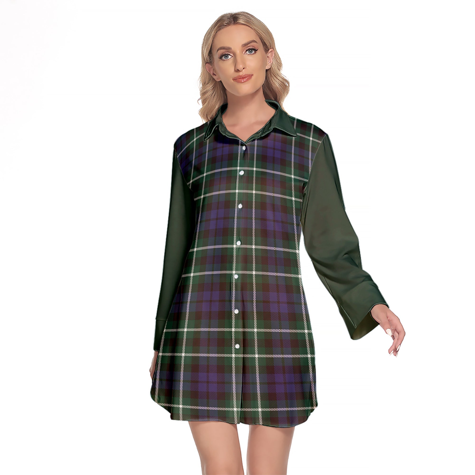 Allardice Tartan Women's Lapel Shirt Dress With Long Sleeve