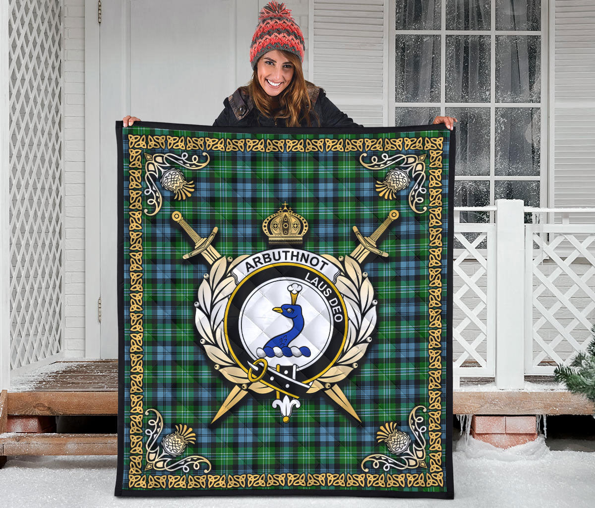 Arbuthnot Ancient Tartan Crest Premium Quilt - Celtic Thistle Style
