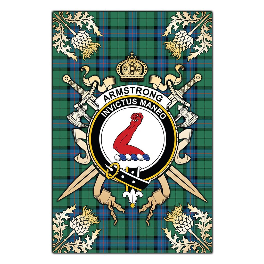 Armstrong Ancient Tartan Crest Black Garden Flag - Gold Thistle Style
