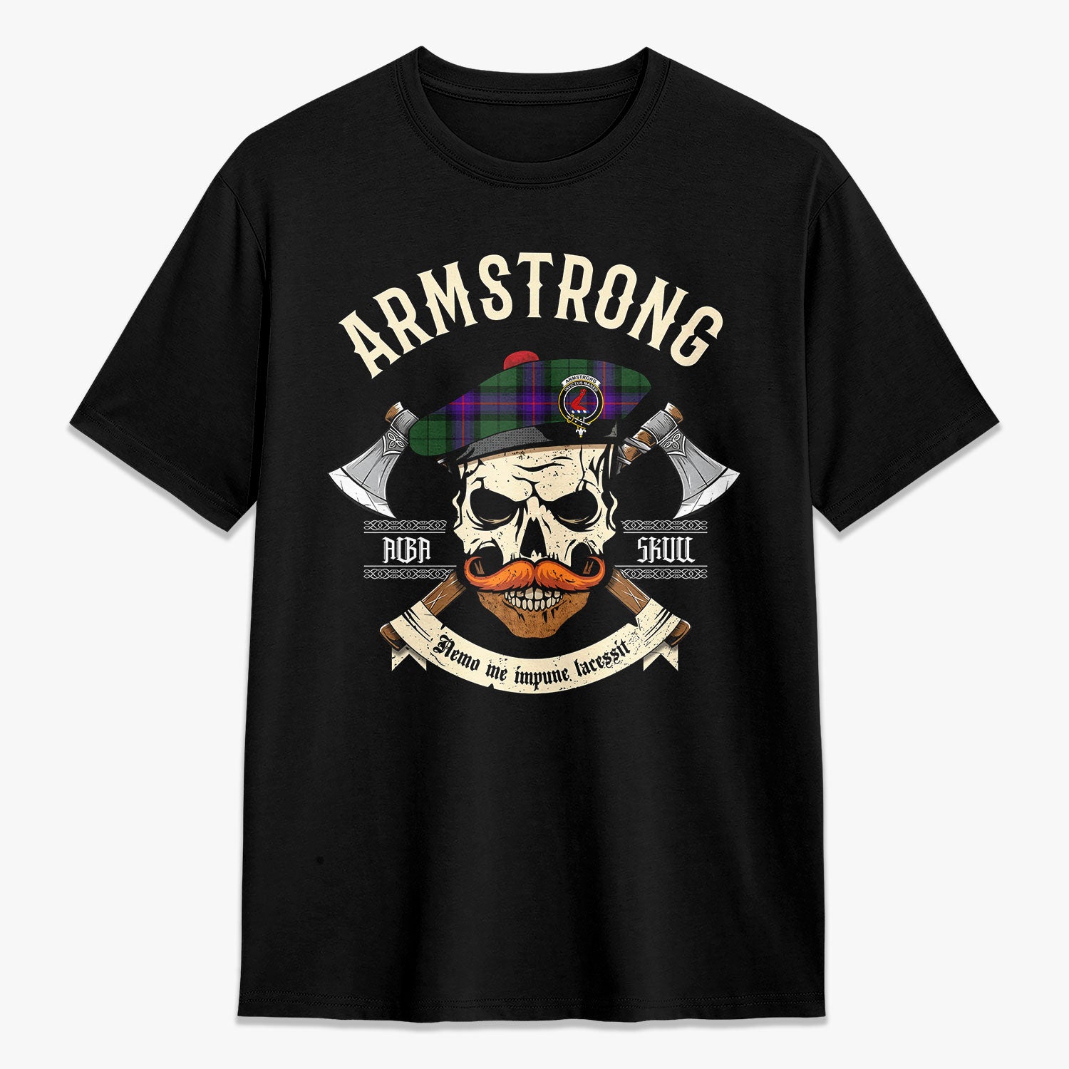Armstrong Modern Tartan Crest 2D T-shirt - Alba Skull Style,