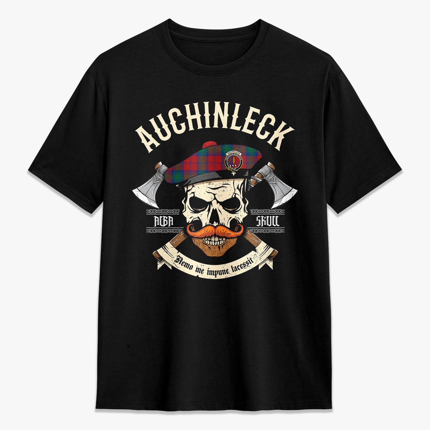 Auchinleck Tartan Crest 2D T-shirt - Alba Skull Style,