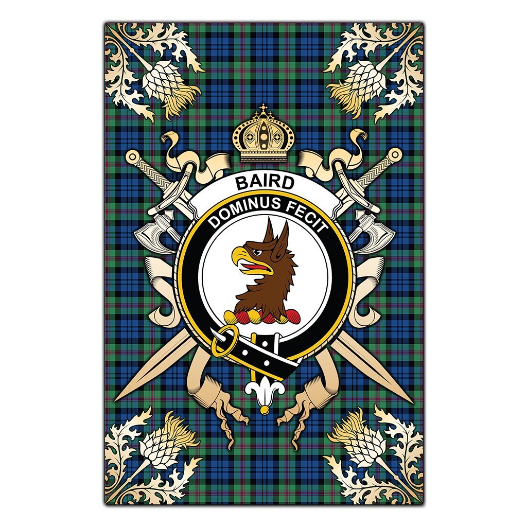 Baird Ancient Tartan Crest Black Garden Flag - Gold Thistle Style