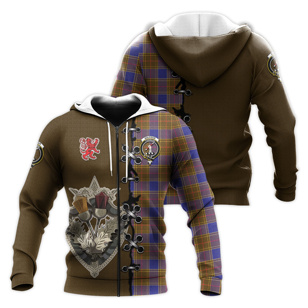 Balfour Modern Tartan Hoodie - Lion Rampant And Celtic Thistle Style