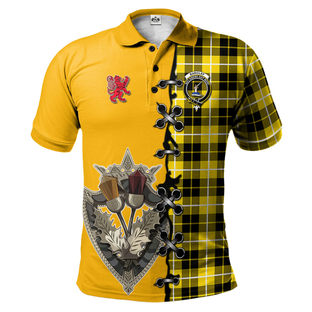 Barclay Dress Modern Tartan Polo Shirt - Lion Rampant And Celtic Thistle Style