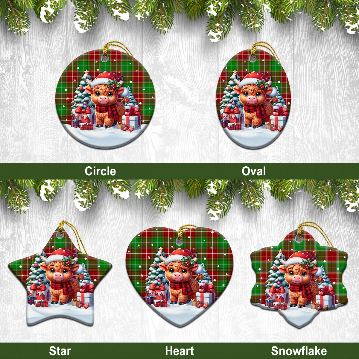 Baxter Modern Tartan Christmas Ceramic Ornament - Highland Cow Winter Style