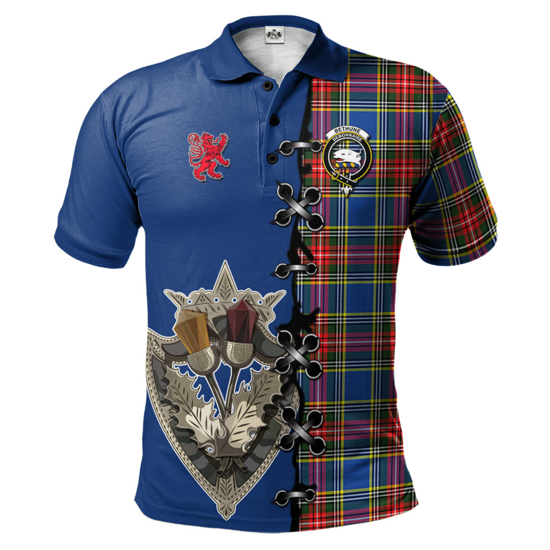 Bethune Tartan Polo Shirt - Lion Rampant And Celtic Thistle Style