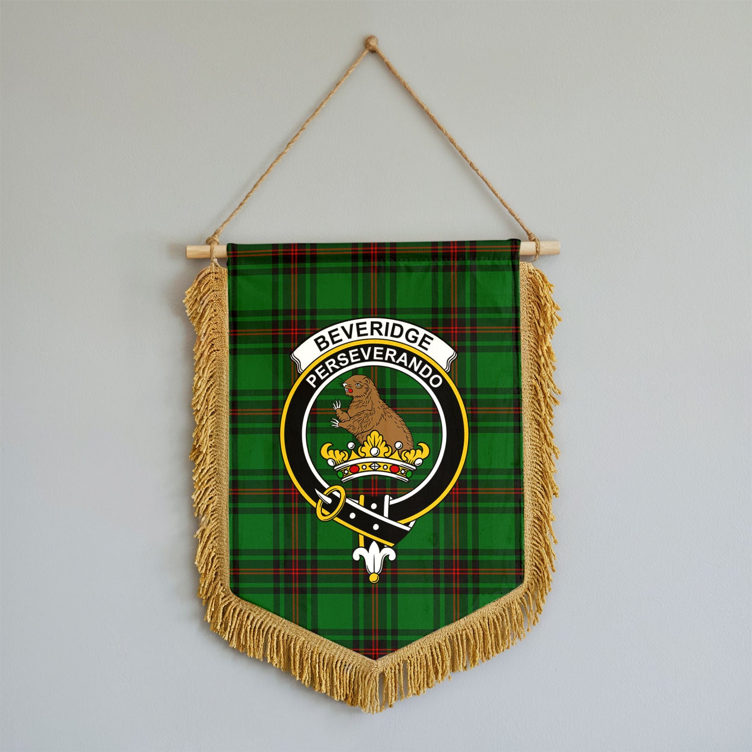 Beveridge Tartan Crest Wall Hanging Banner - Wood Pole