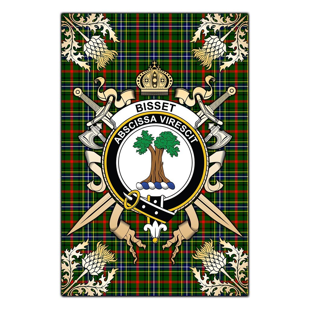 Bisset Tartan Crest Black Garden Flag - Gold Thistle Style