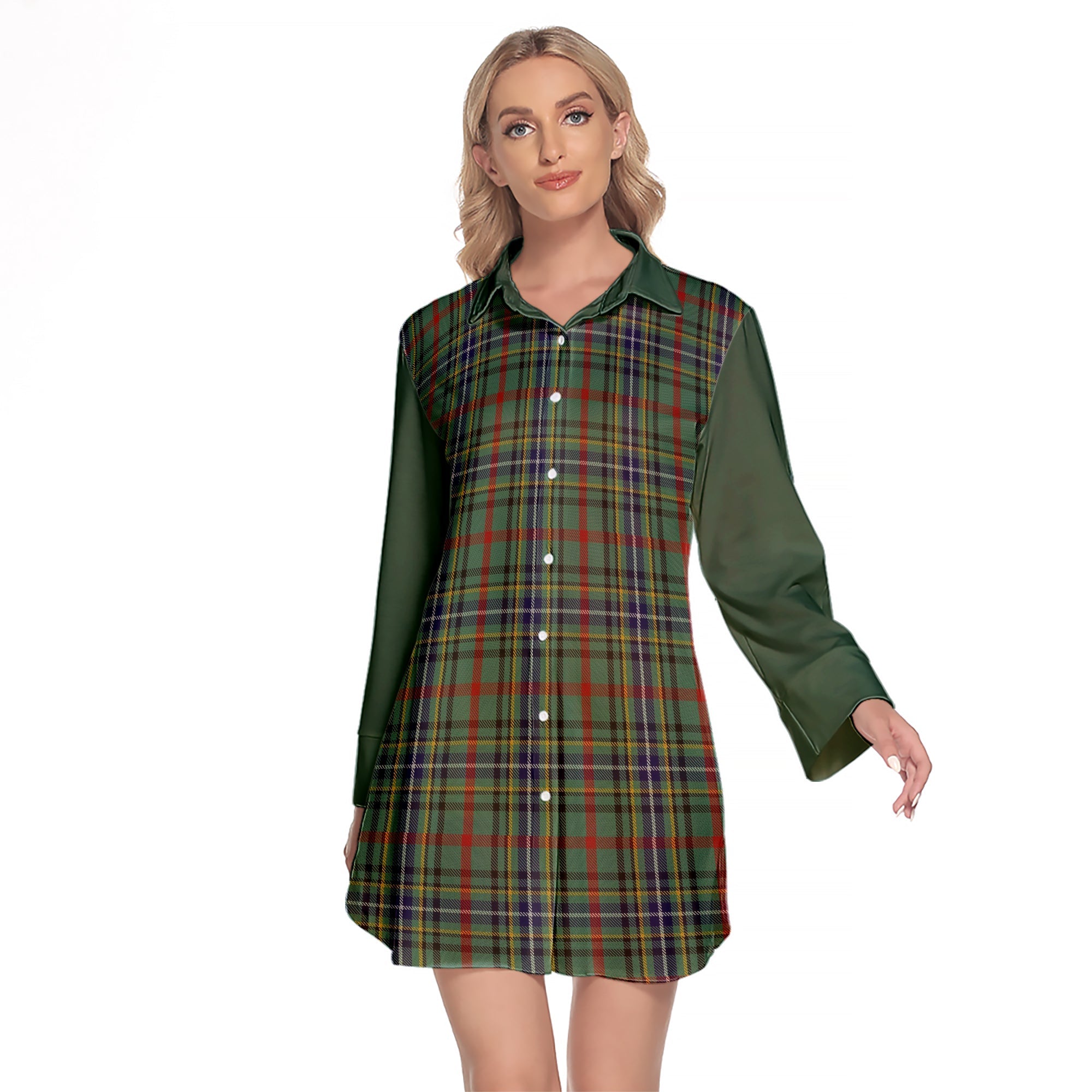 Bisset Tartan Women's Lapel Shirt Dress With Long Sleeve