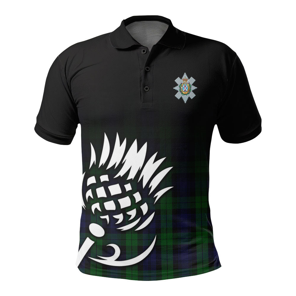 Black Watch Tartan Crest Polo Shirt - Thistle Black Style