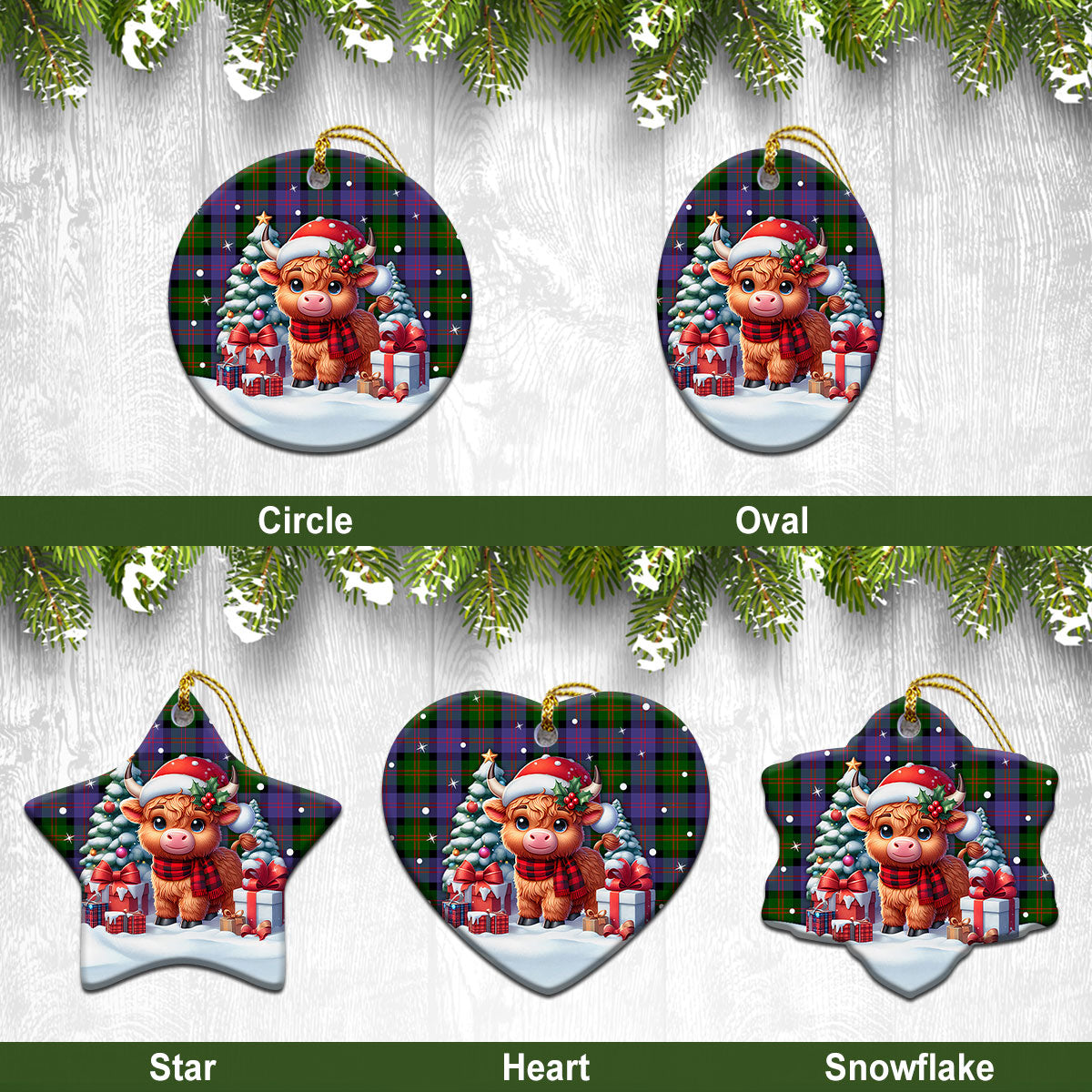 Blair Modern Tartan Christmas Ceramic Ornament - Highland Cow Winter Style