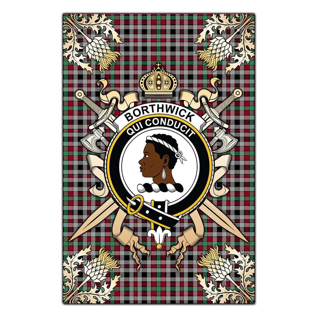 Borthwick Ancient Tartan Crest Black Garden Flag - Gold Thistle Style