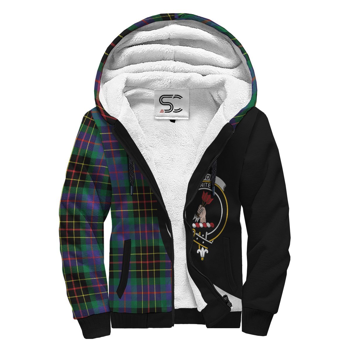 Brodie Hunting Modern Tartan Crest Sherpa Hoodie - Circle Style