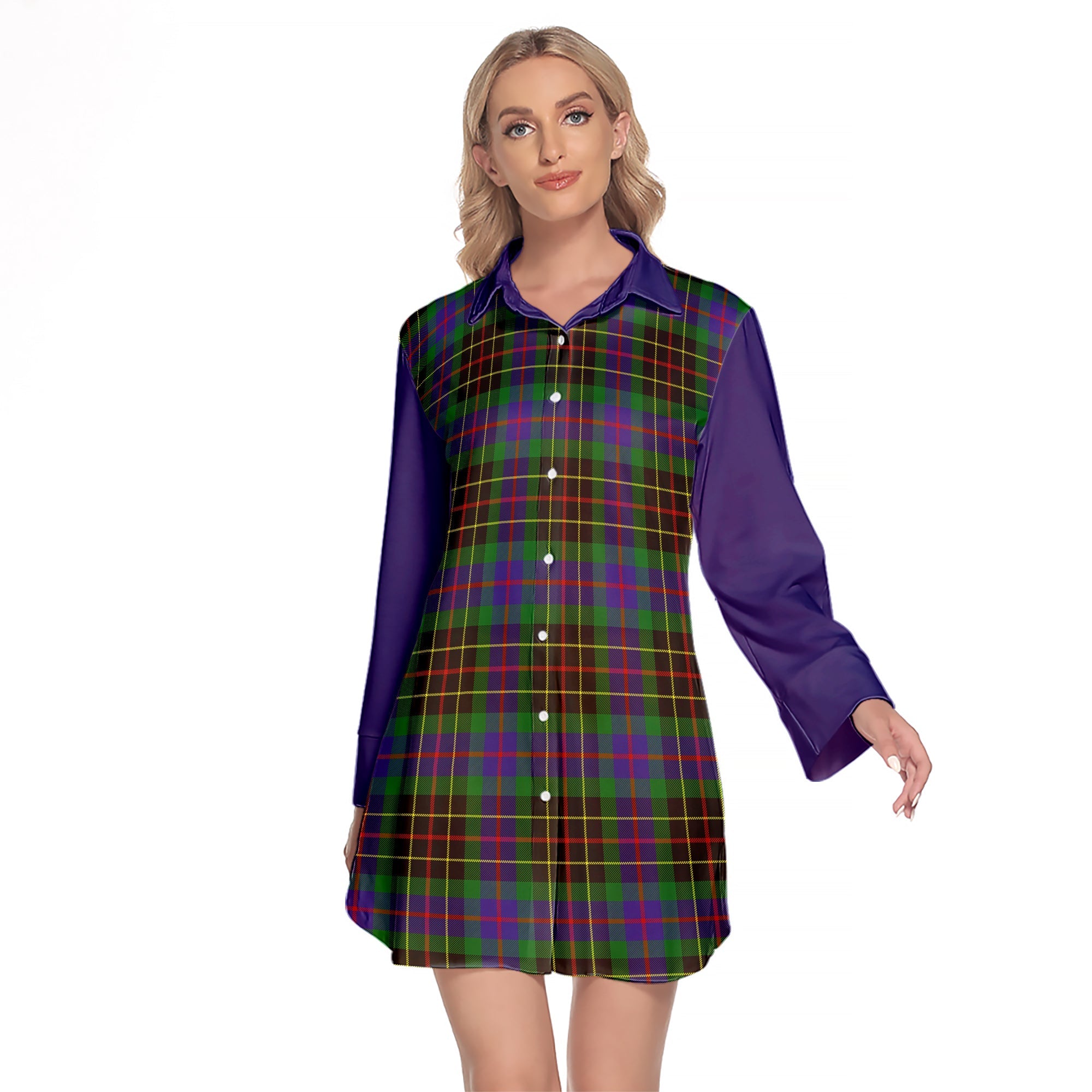Brodie Hunting Modern Tartan Women's Lapel Shirt Dress With Long Sleeve