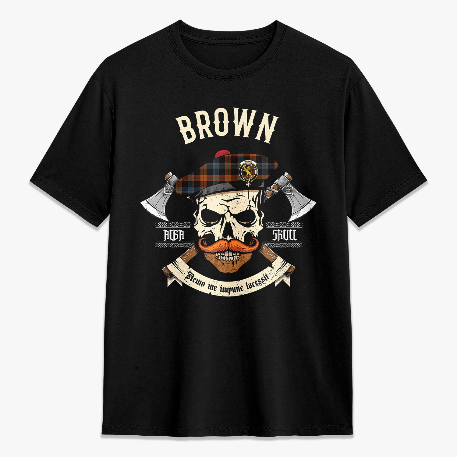 Brown Ancient Tartan Crest 2D T-shirt - Alba Skull Style,