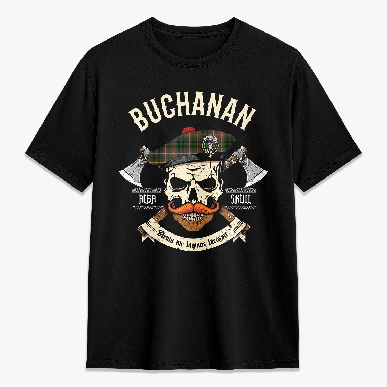 Buchanan Hunting Tartan Crest 2D T-shirt - Alba Skull Style,