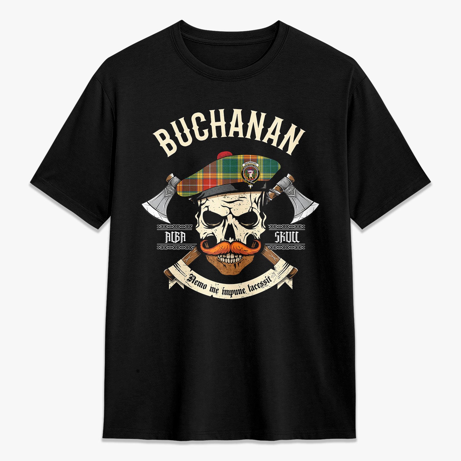 Buchanan Old Sett Tartan Crest 2D T-shirt - Alba Skull Style