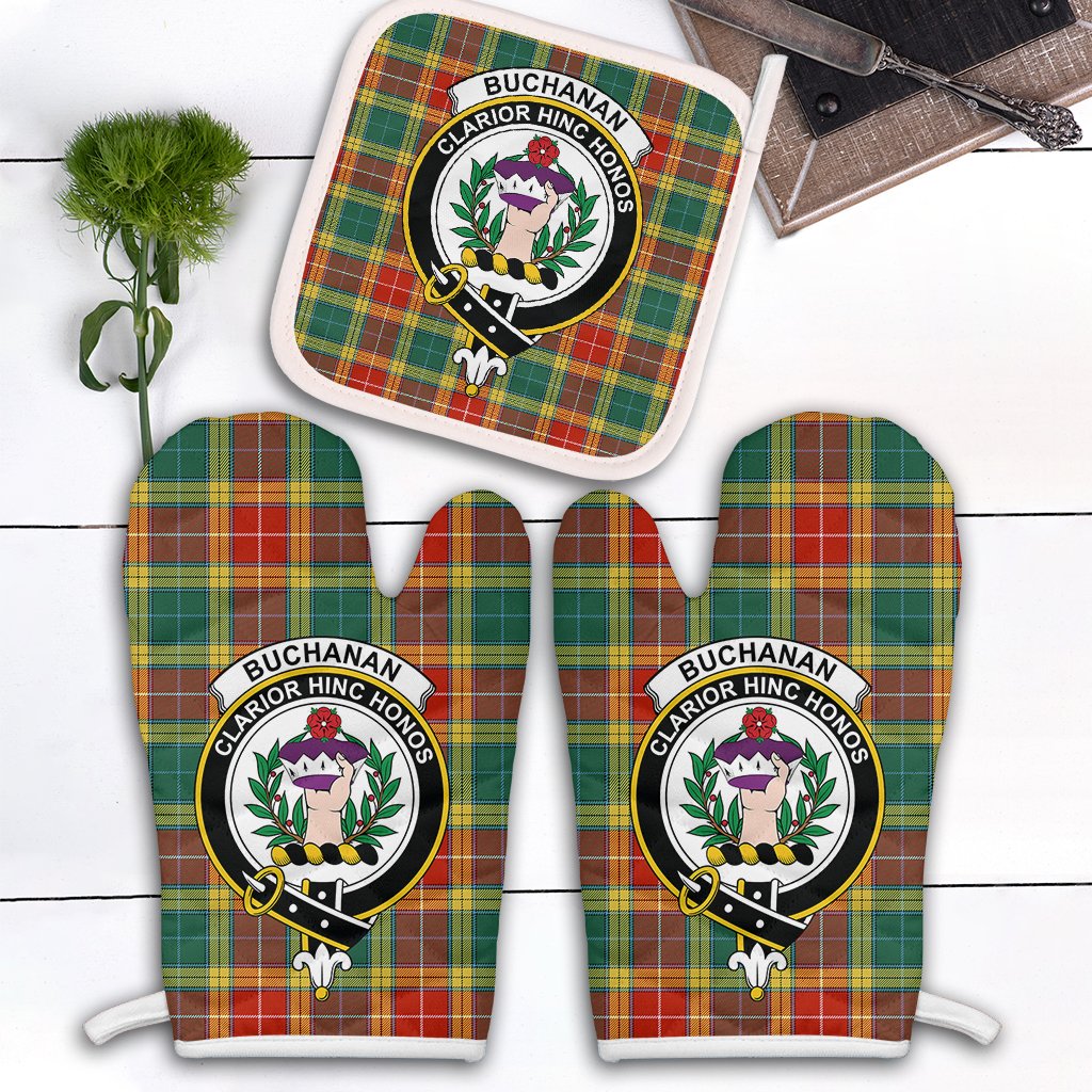 Buchanan Old Sett Tartan Crest Oven Mitt And Pot Holder (2 Oven Mitts + 1 Pot Holder)