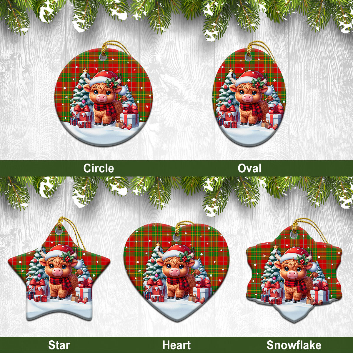 Burnett Ancient Tartan Christmas Ceramic Ornament - Highland Cow Winter Style