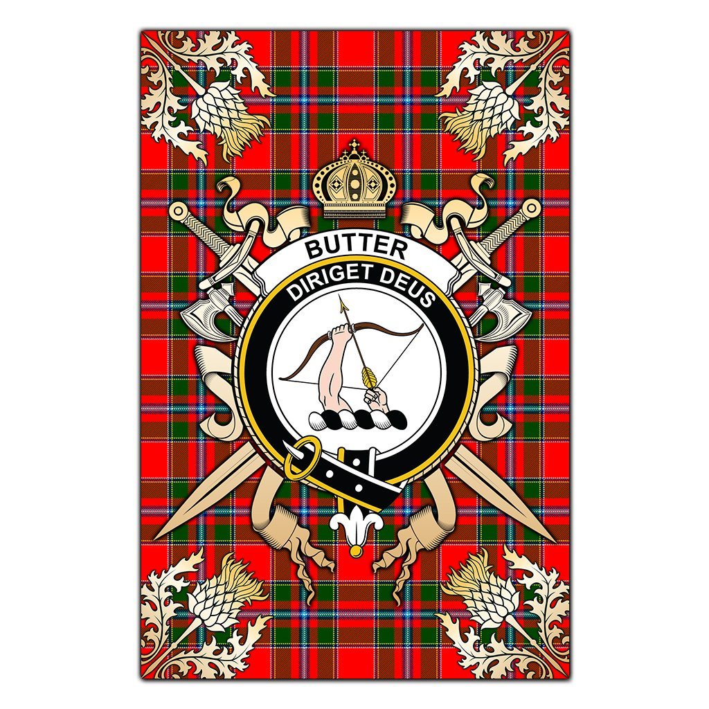 Butter Tartan Crest Black Garden Flag - Gold Thistle Style