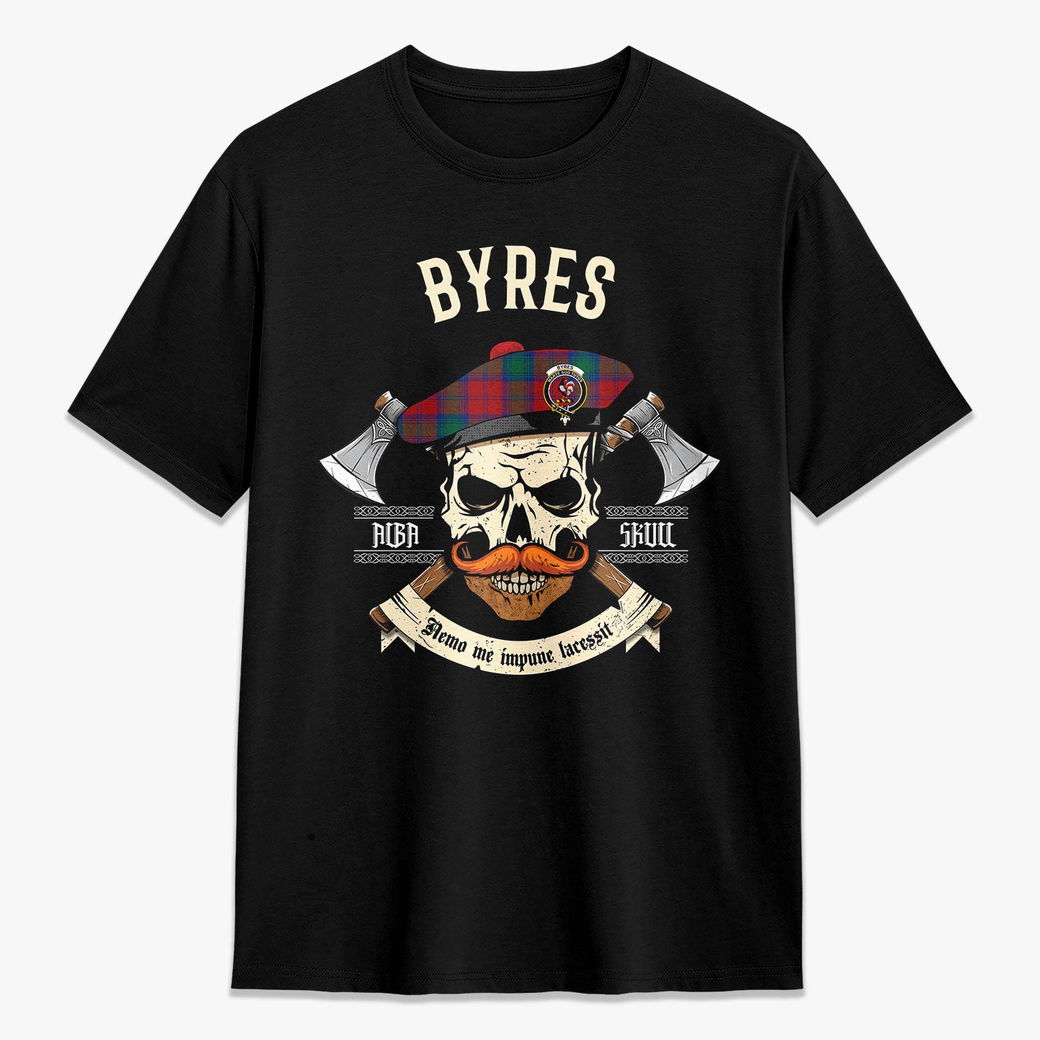Byres Tartan Crest 2D T-shirt - Alba Skull Style,