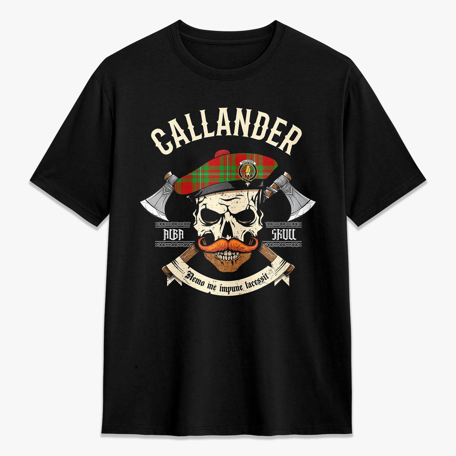 Callander Tartan Crest 2D T-shirt - Alba Skull Style,