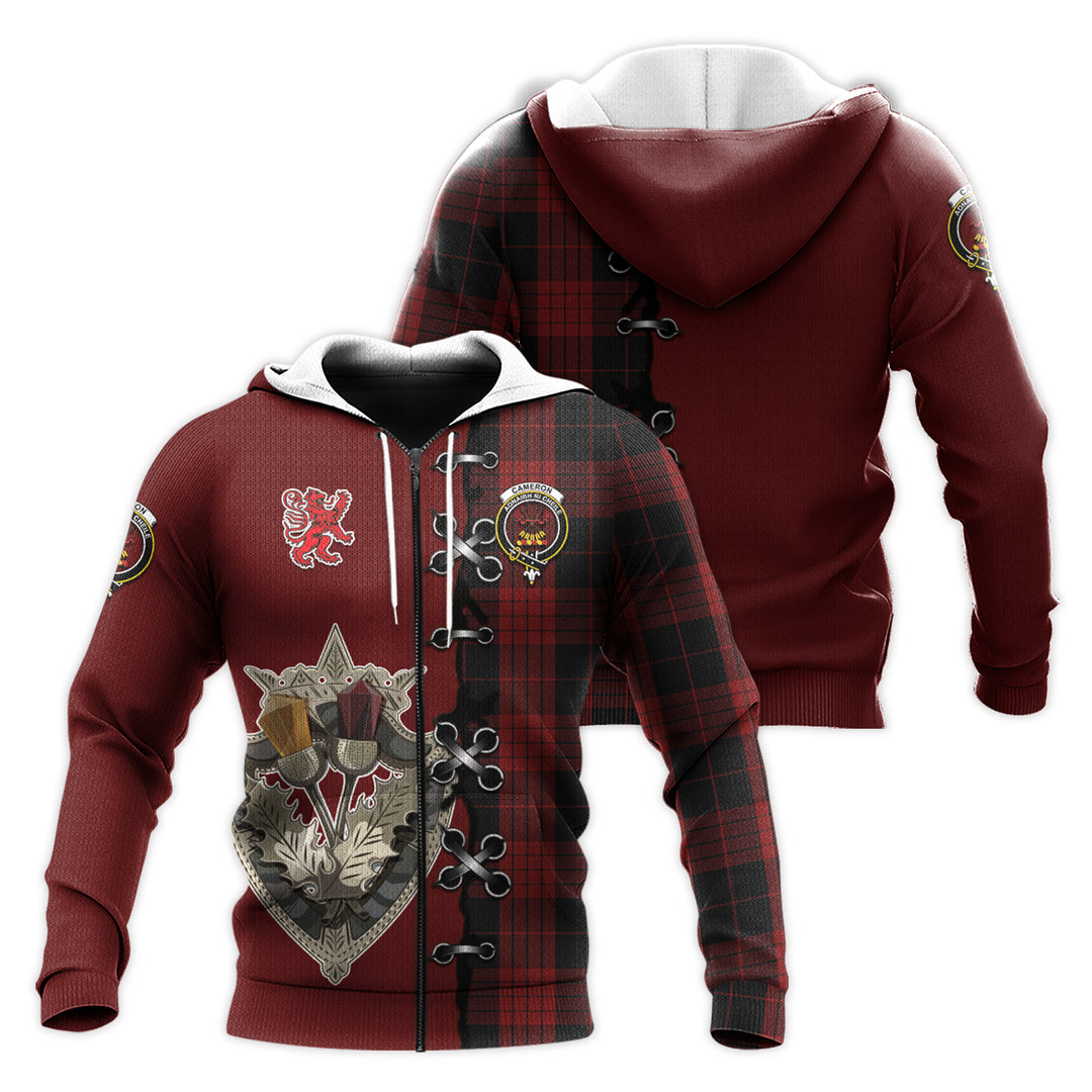 Cameron Black and Red Tartan Hoodie - Lion Rampant And Celtic Thistle Style
