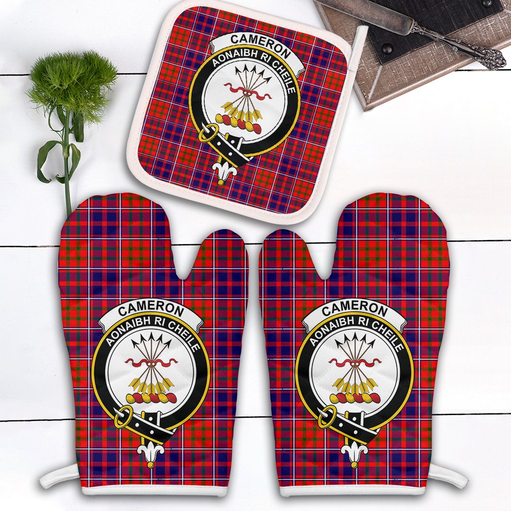 Cameron Of Lochiel Modern Tartan Crest Oven Mitt And Pot Holder (2 Oven Mitts + 1 Pot Holder)