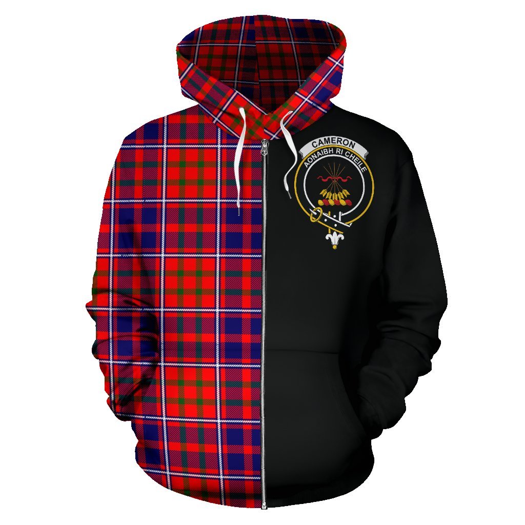 Cameron of Lochiel Modern Tartan Crest Zipper Hoodie - Half Of Me Style