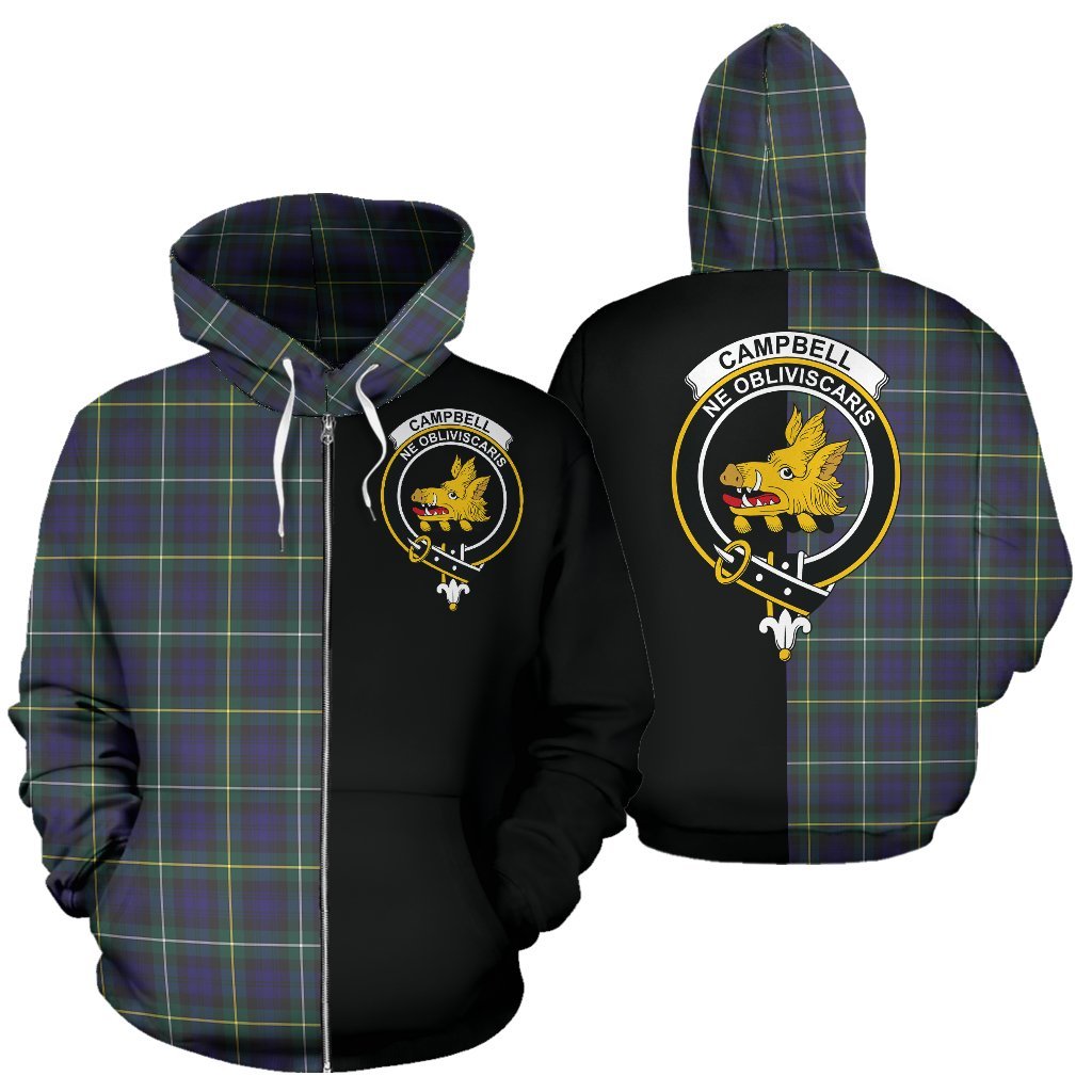 Campbell Argyll Modern Tartan Crest Zipper Hoodie - Half Of Me Style
