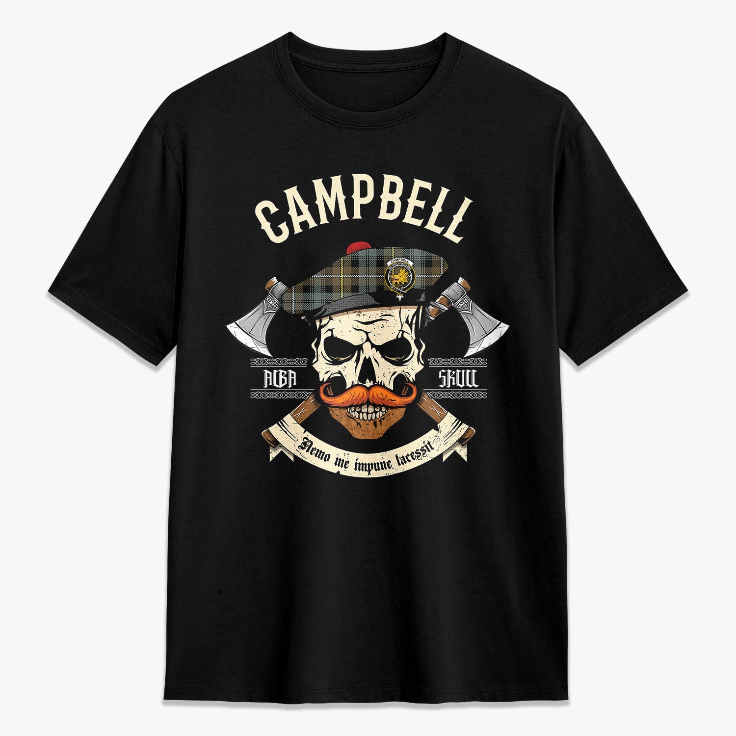 Campbell Argyll Weathered Tartan Crest 2D T-shirt - Alba Skull Style,