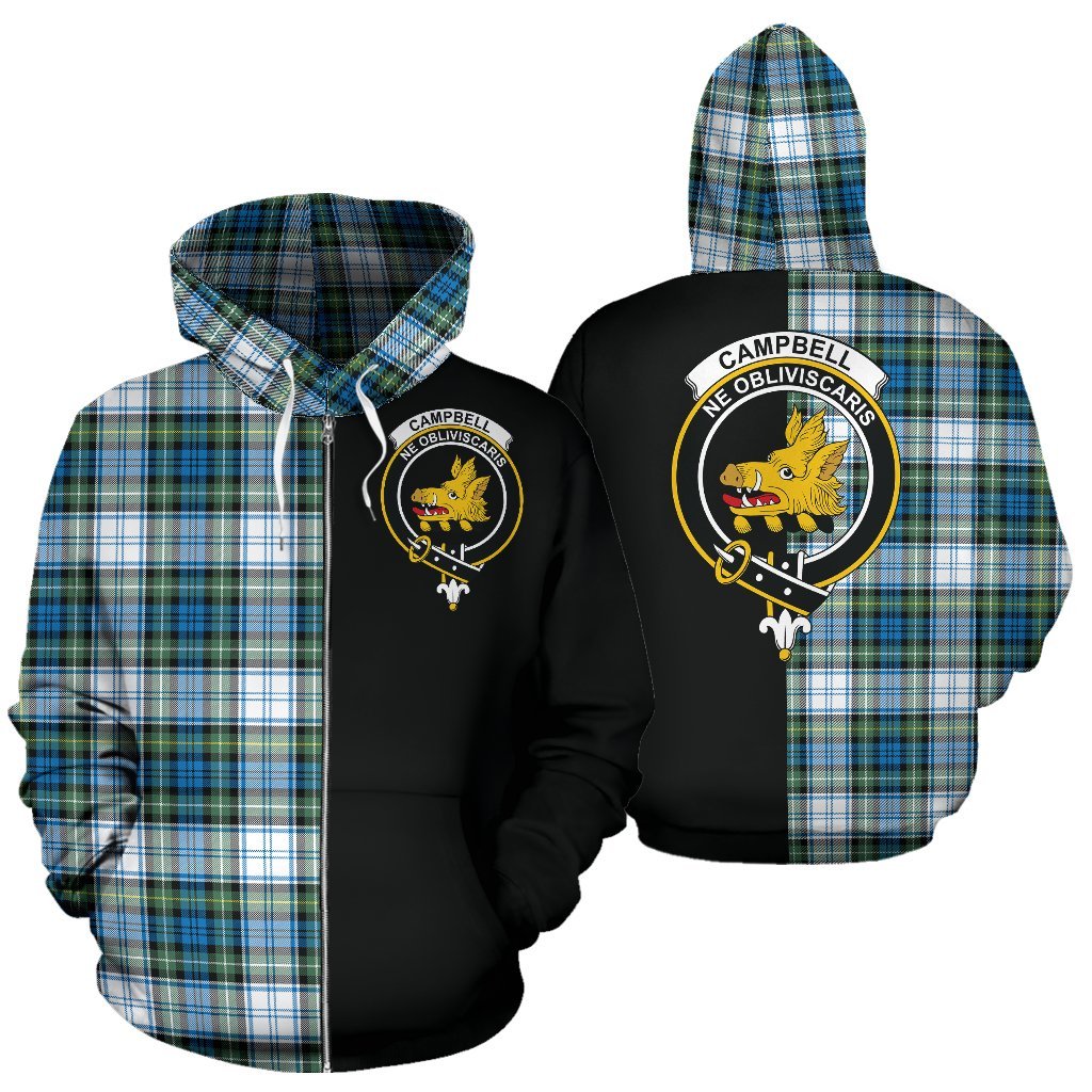 Campbell Dress Ancient Tartan Crest Zipper Hoodie - Half Of Me Style