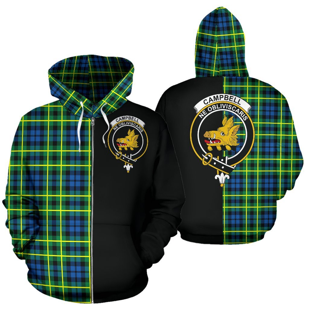 Campbell of Breadalbane Ancient Tartan Crest Zipper Hoodie - Half Of Me Style