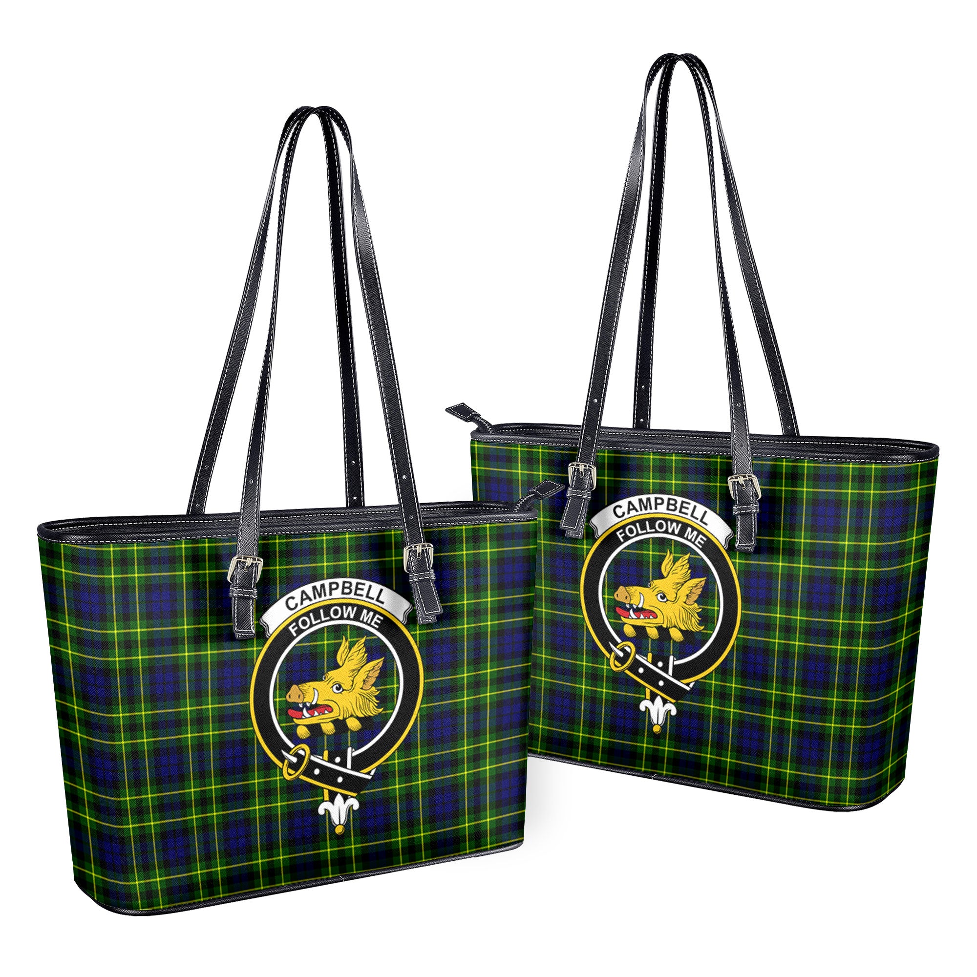 Campbell of Breadalbane Modern Tartan Crest Leather Tote Bag