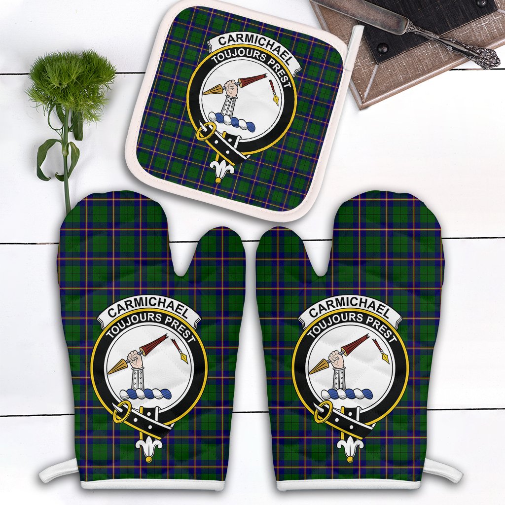Carmichael Modern Tartan Crest Oven Mitt And Pot Holder (2 Oven Mitts + 1 Pot Holder)