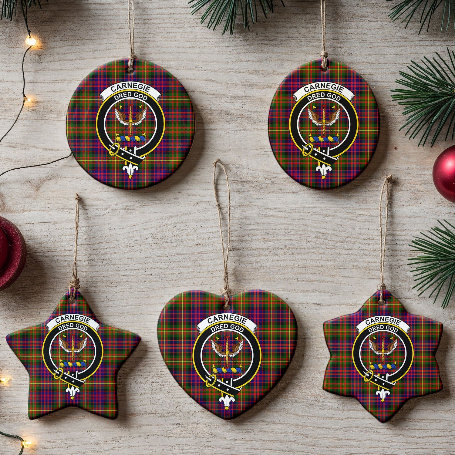 Carnegie Modern Tartan Crest Christmas Ceramic Ornament