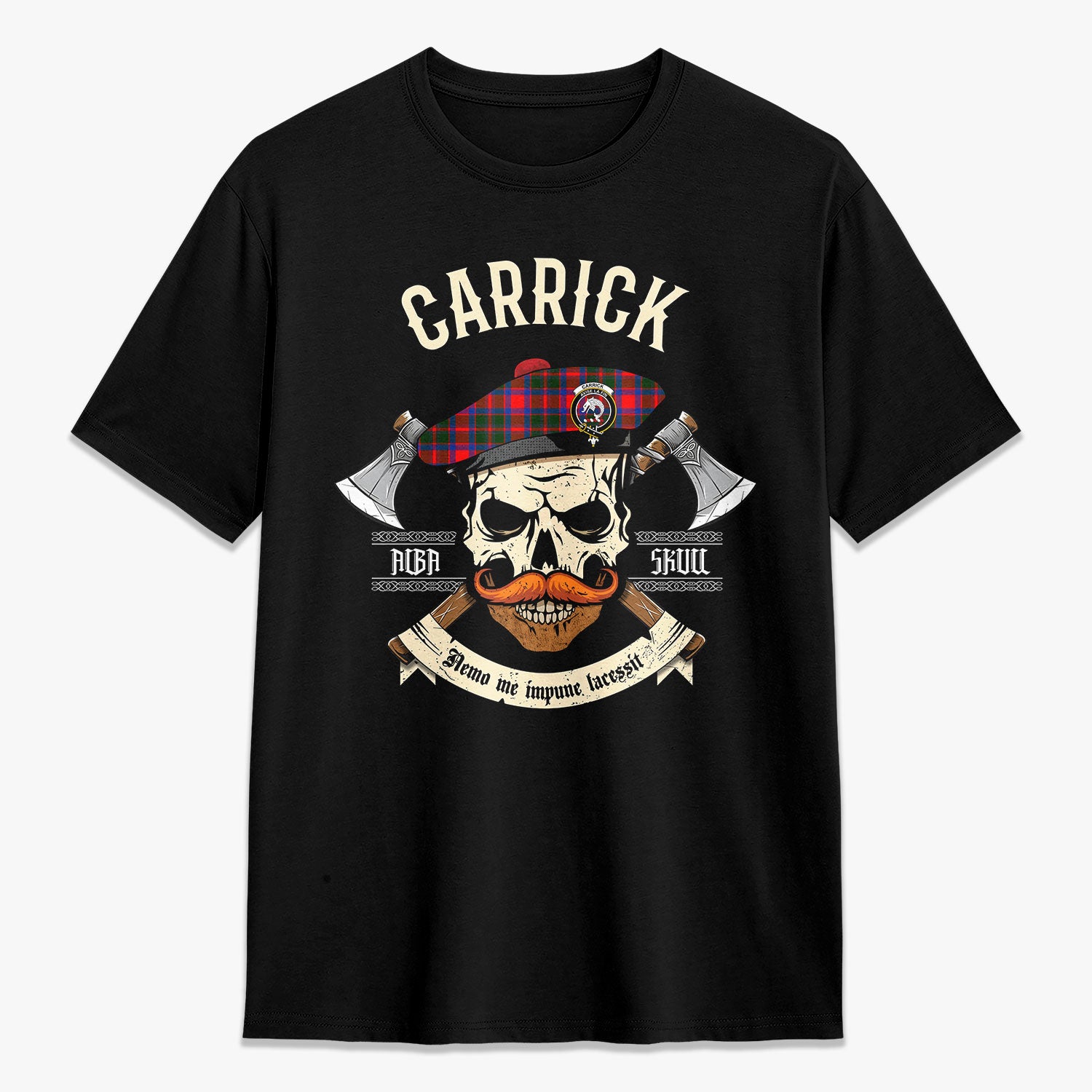 Carrick District Tartan Crest 2D T-shirt - Alba Skull Style,
