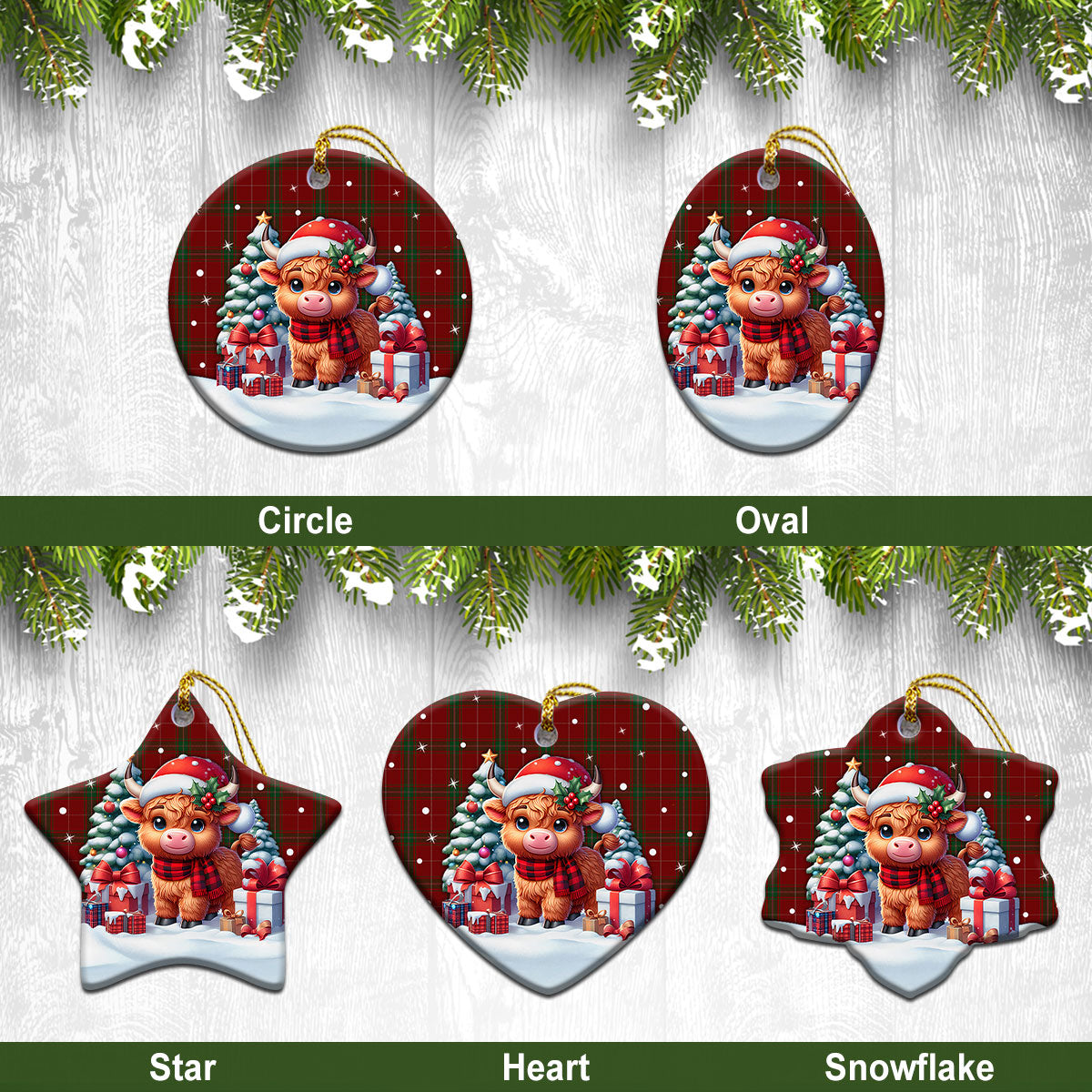 Carruthers Tartan Christmas Ceramic Ornament - Highland Cow Winter Style