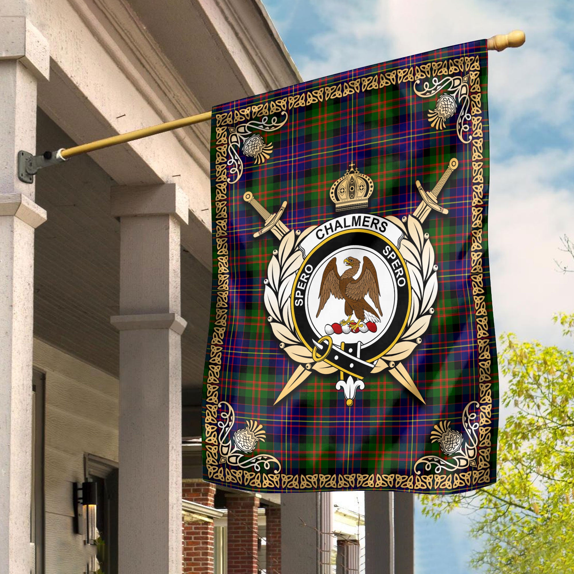 Chalmers (Balnacraig) Tartan Crest Garden Flag - Celtic Thistle Style