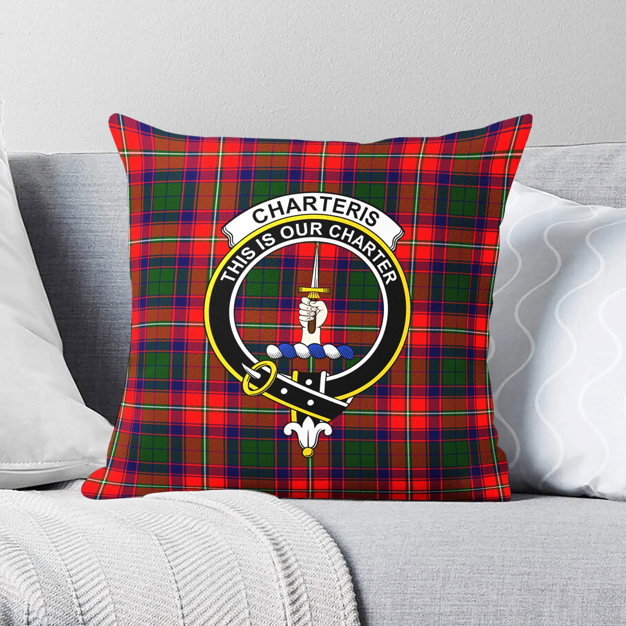 Charteris (Earl of Wemyss) Tartan Crest Pillow Cover