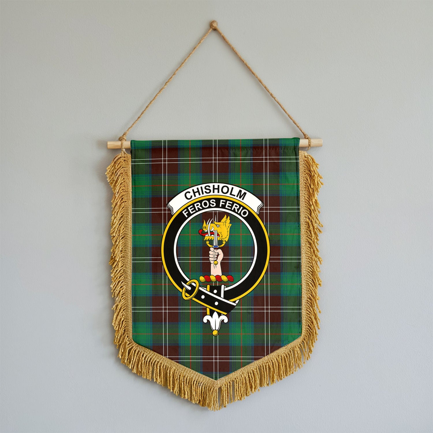 Chisholm Hunting Ancient Tartan Crest Wall Hanging Banner - Wood Pole