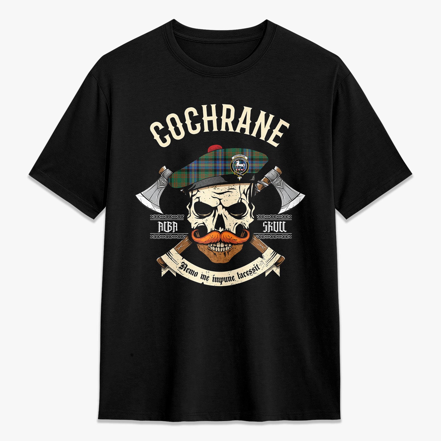 Cochrane Ancient Tartan Crest 2D T-shirt - Alba Skull Style,