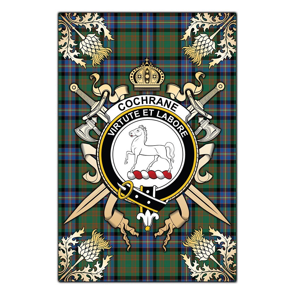 Cochrane Ancient Tartan Crest Black Garden Flag - Gold Thistle Style