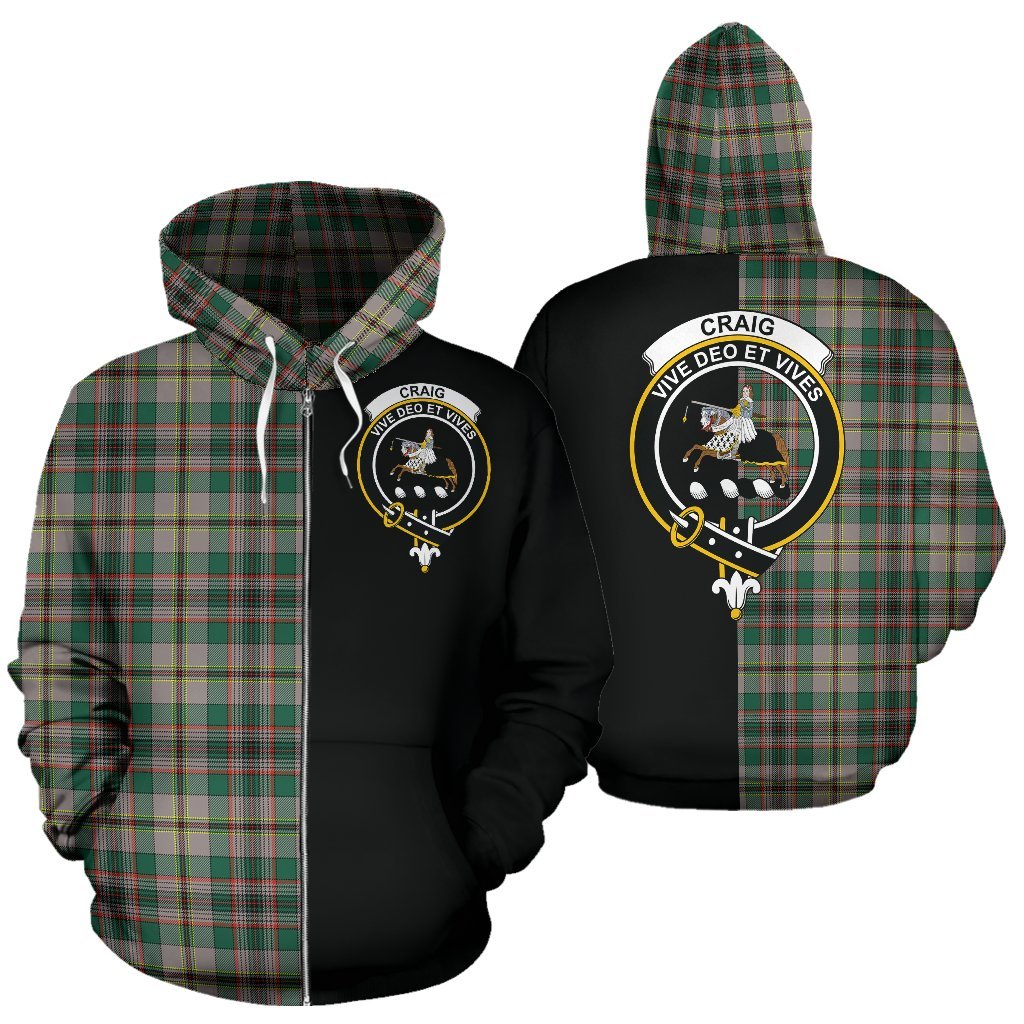 Craig Ancient Tartan Crest Zipper Hoodie - Half Of Me Style