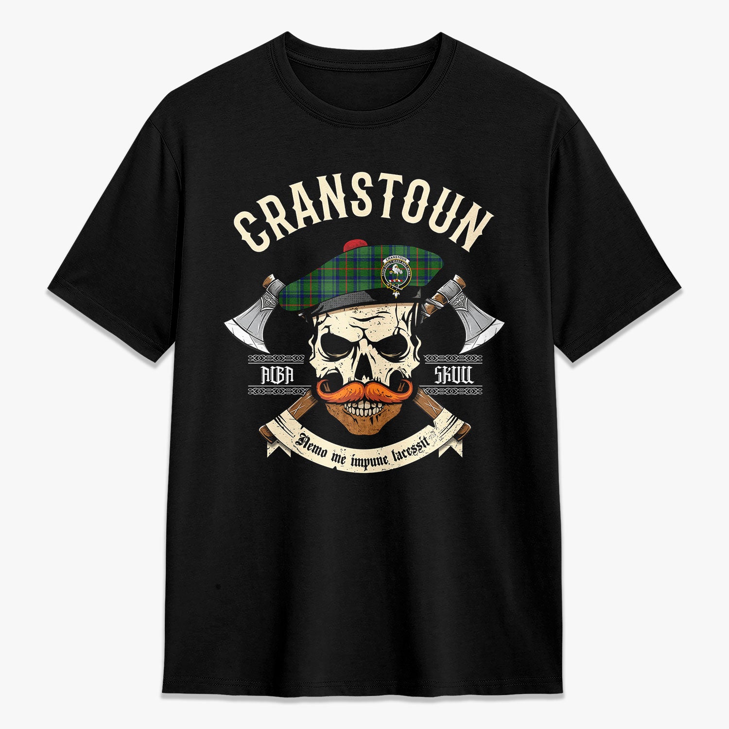 Cranstoun Tartan Crest 2D T-shirt - Alba Skull Style,